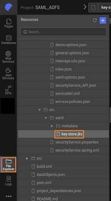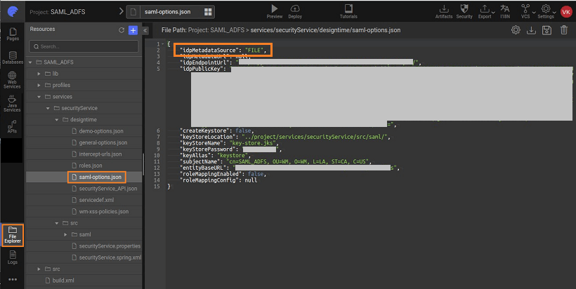 The SAML Configuration done will be stored in a saml-options.json file under project option in Files tab as shown below :