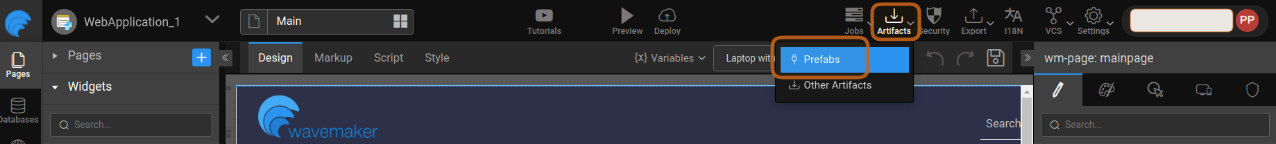 If you want to share the Prefab with another WaveMaker Developer, Export the Prefab as Zip. This zipped file can be imported from the Prefab section of the Project Workspace.
