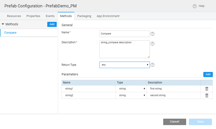 of the method. This will be used in the generation of the documentation for the Prefab while publishing;Return Type