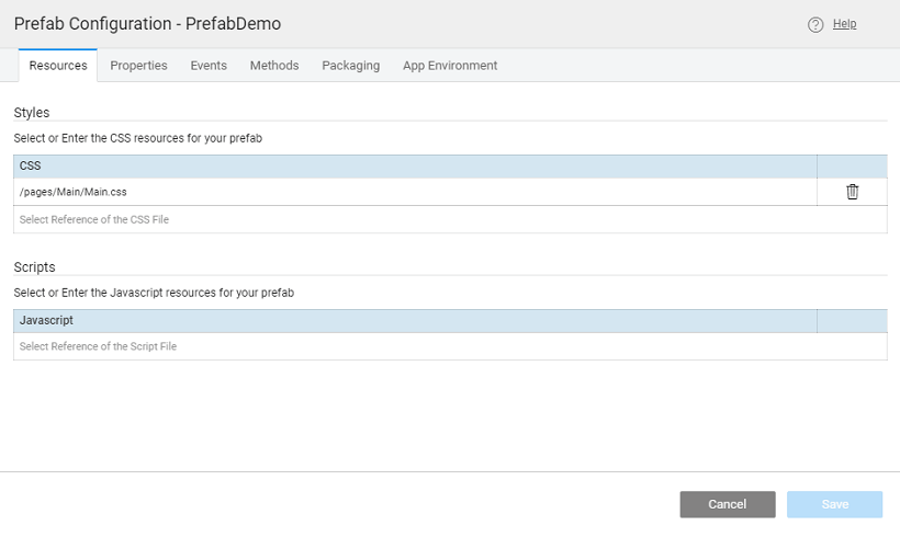 Under this tab, you can set the following resource references as needed by your Prefab. Before setting the details, you will need to Import Resource into your Prefab project.