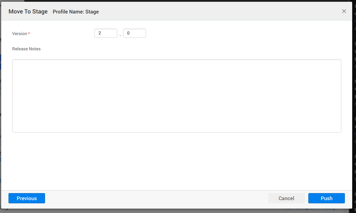 2. Push the app from one phase to another without the need to modify the app. Push will deploy the app into the new deployment environment. A separate URL is generated for each phase. You can version the apps for easy tracking.