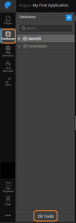 WaveMaker provides database tools to connect to your development and deployment database servers in the cloud. You can execute scripts and run the commands supported by the database server. To access the database tools, click on DB Tools located at the bottom of your project workspace, when in the Databases Resource page.