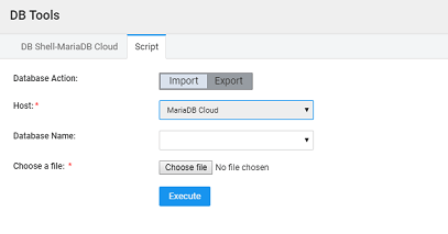 1. Select the database server on which the script needs to be executed by selecting from the options in the Host field. Currently, the only server option is MariaDB Cloud database server.