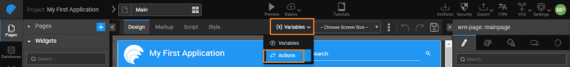 The scope of the Action being created. By default it is set to Page, you can change it to Application if you want this action to be available across the app.