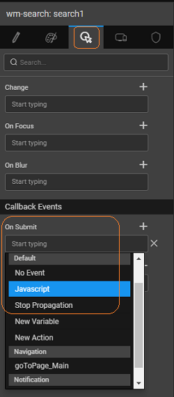 In the Script the following function will be created The selected item can be accessed by '$event.data.item' property as follows: Here we have set the labels to the department name and id returned by the search widget. NOTE: The label names might vary in your project.