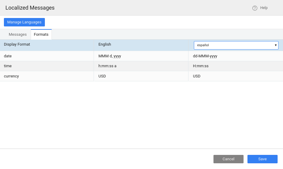 2. When the user selects a Language on your application or when you set the default language of the app from the Project Settings dialog, WaveMaker applies the relevant locale settings to show the messages as per its value for that locale.