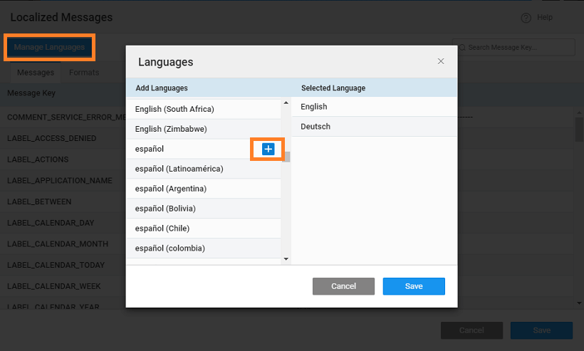 1. To create a new localized text, click the Plus icon placed next to Message Key.