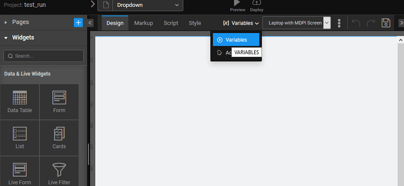 1. Create or Open the app where you want to use the Dropdown Menu