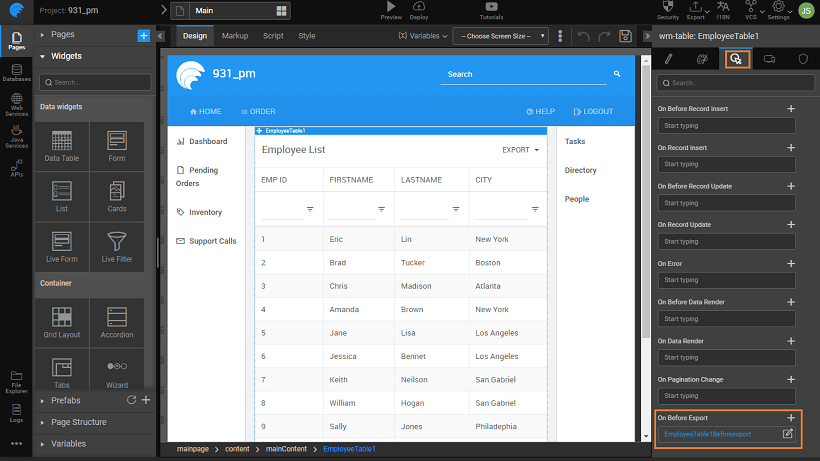 6. You can further customize the data being exported using the on Before Export callback event of the Data Table.
