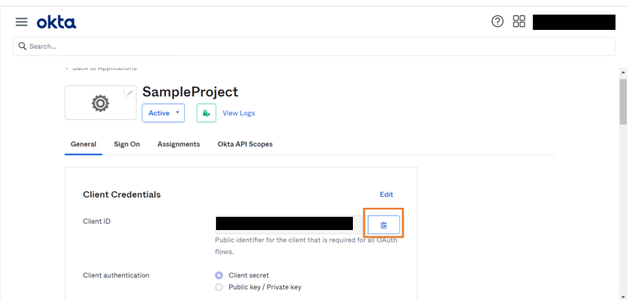 1. Click Copy to copy the Client ID to clipboard. Later, provide this information in WaveMaker security configurations.