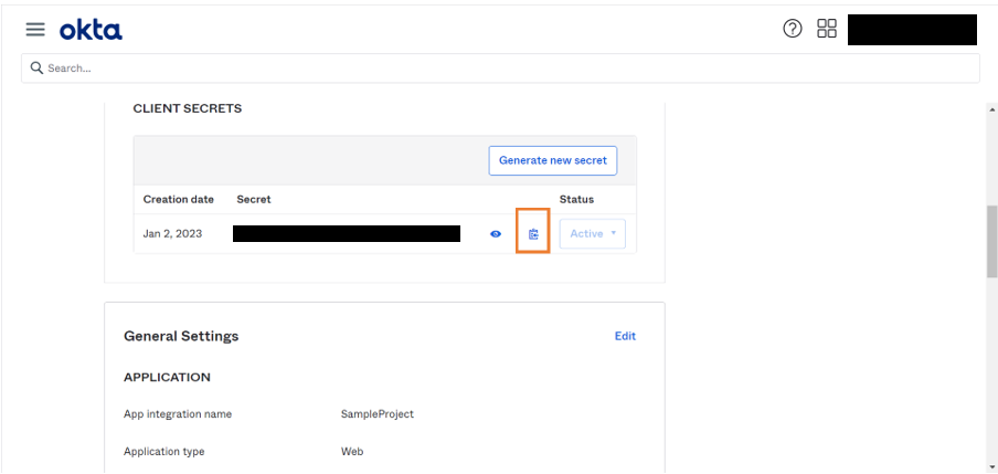 1. Click Copy icon to copy the Client Secret to clipboard. Later, provide this information in WaveMaker security configurations.