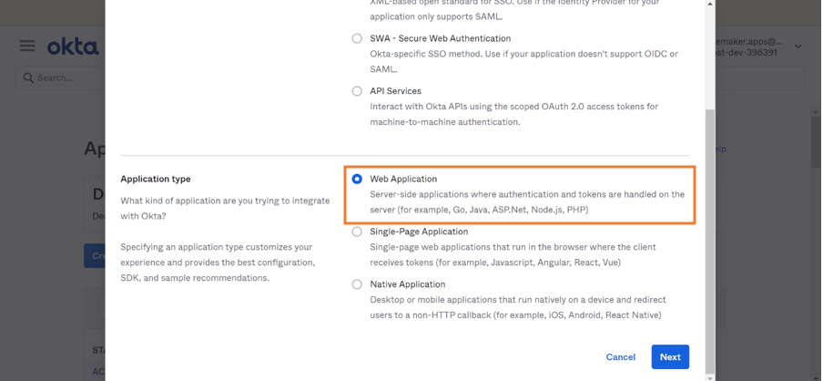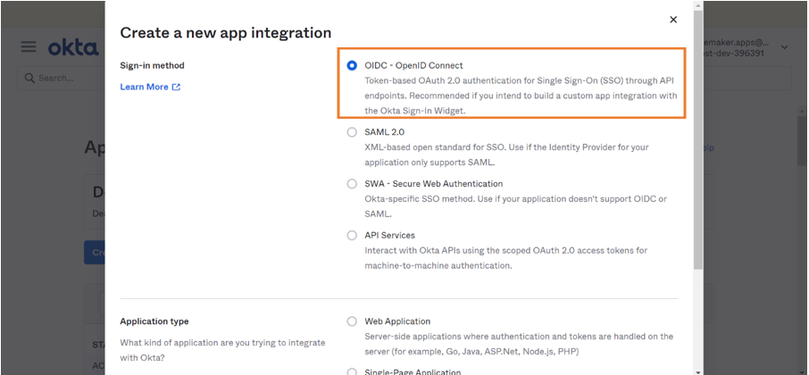 Below are the steps to create an application in Okta Developer.