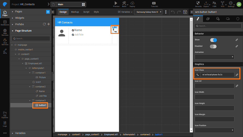 An application has to be built to list the phone numbers of employees in an organization. The user should be able to call directly from the app. For the database, we will be using the sample HR database that is available in WaveMaker.