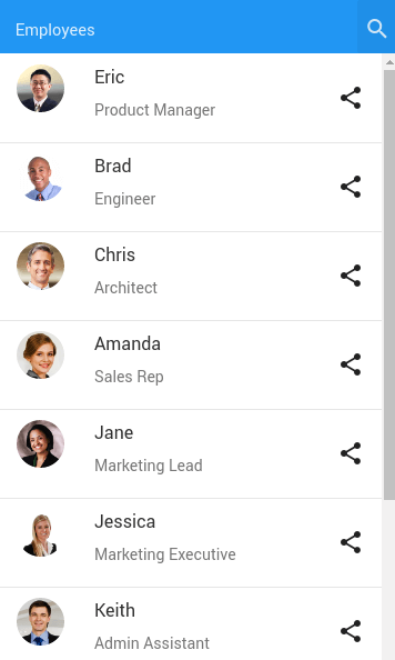 - Now, filter employee ‘Chris’ by typing ‘chris’ in search text box. That’s how search widget on mobile navbar can be used.