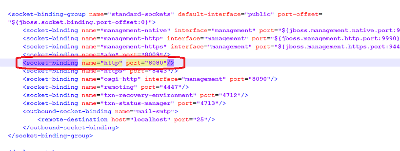 - Open standalone.xml file in '..Jboss home directory\standalone\configuration'.