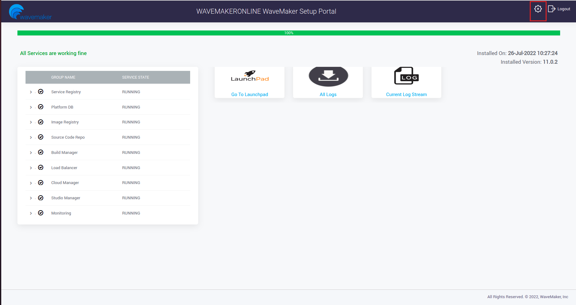 • Login into the CW portal, after login in home page you can see settings icon on the top right as marked below.