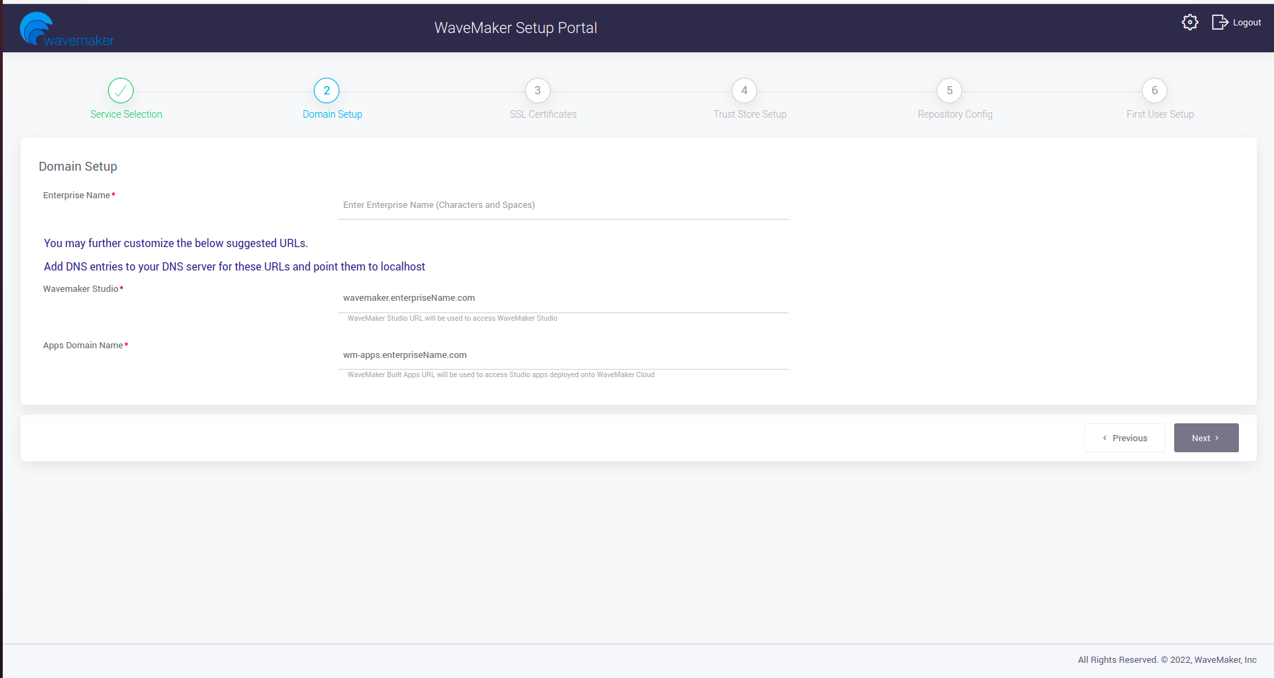 • Setup domain by giving enterprise name and click on next.