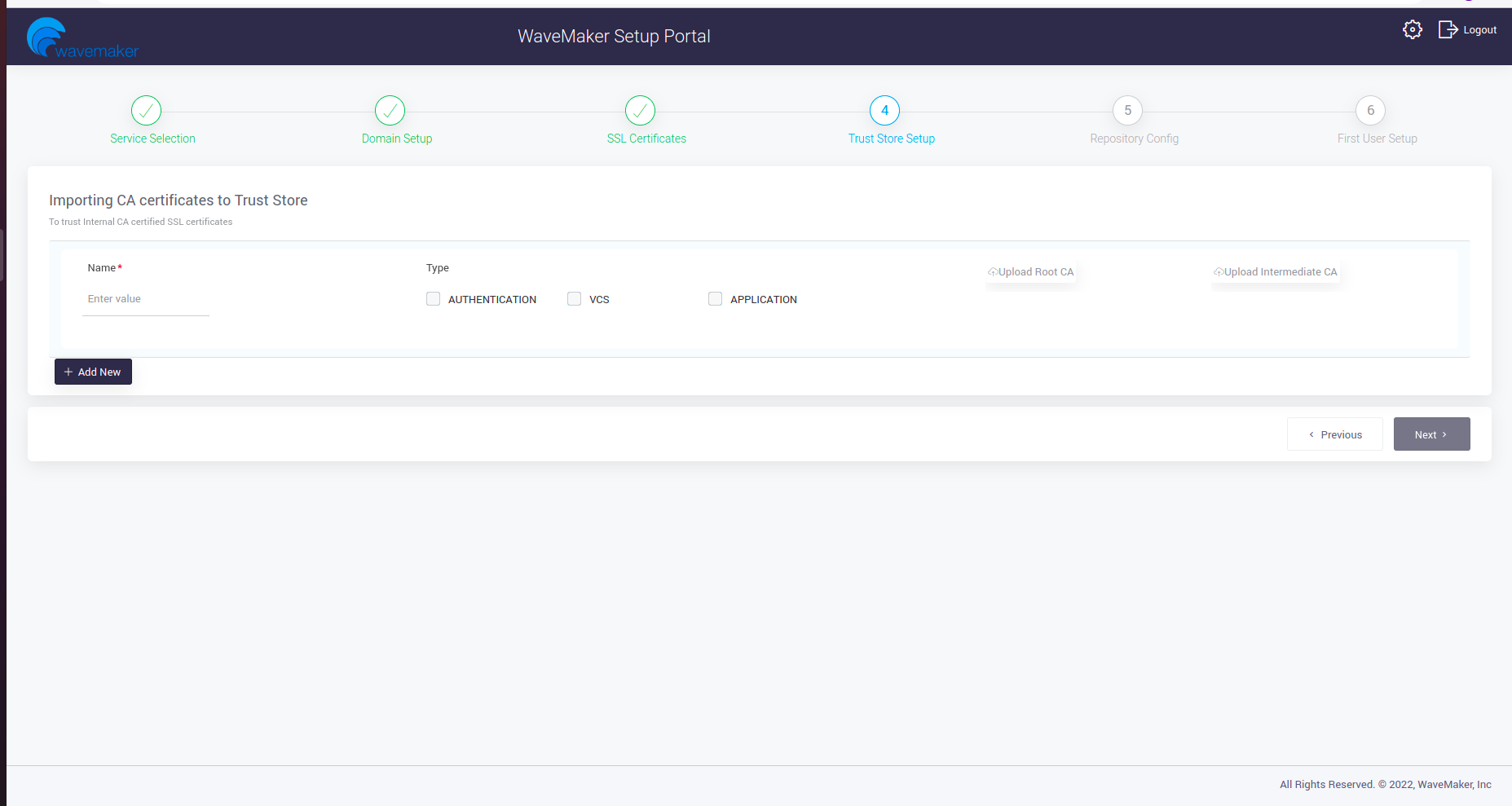 • Setup password for the WaveMaker setup portal.
