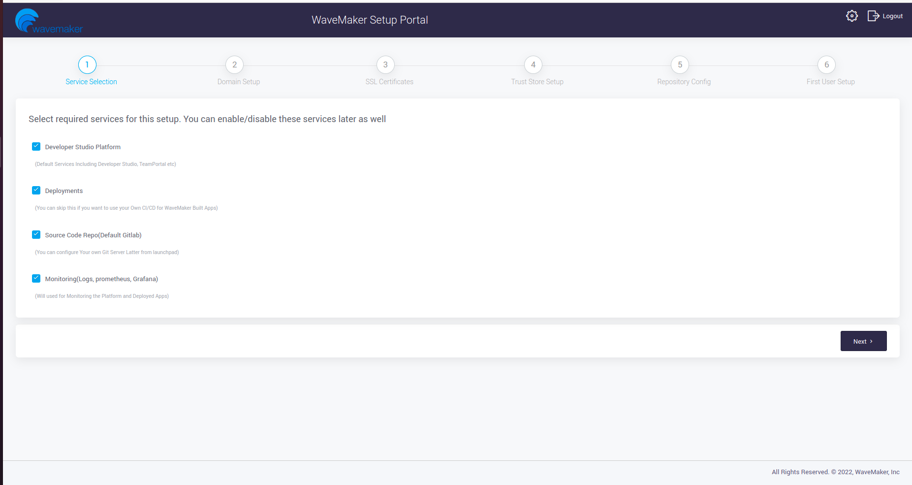 • The Developer Studio Platform is a default service and it is responsible for the functionality of running the WaveMaker studio.