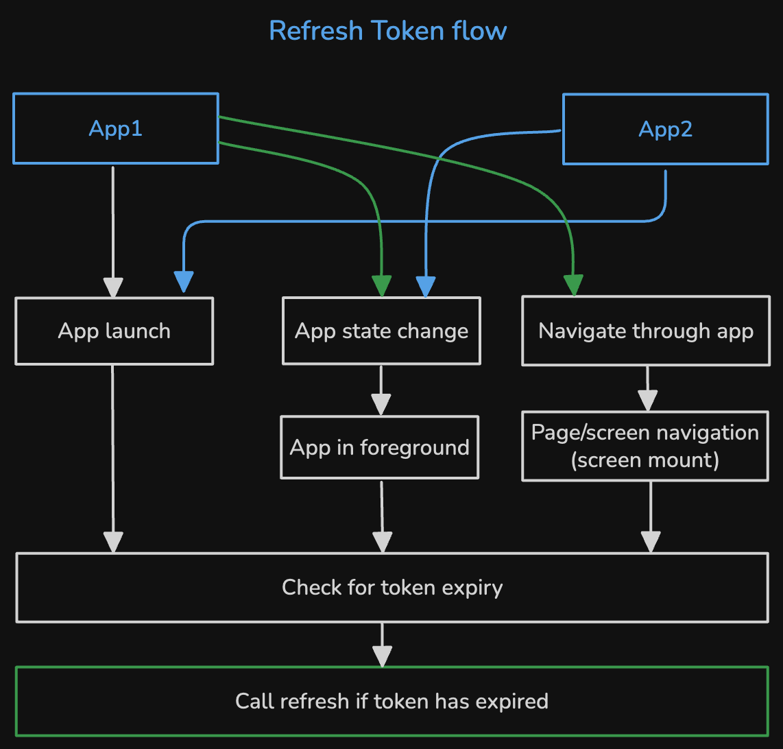function can also be used in App 1 when the app is reopened or during app launch to check for existing valid tokens, avoiding the need for users to re-authenticate if they have previously logged in.